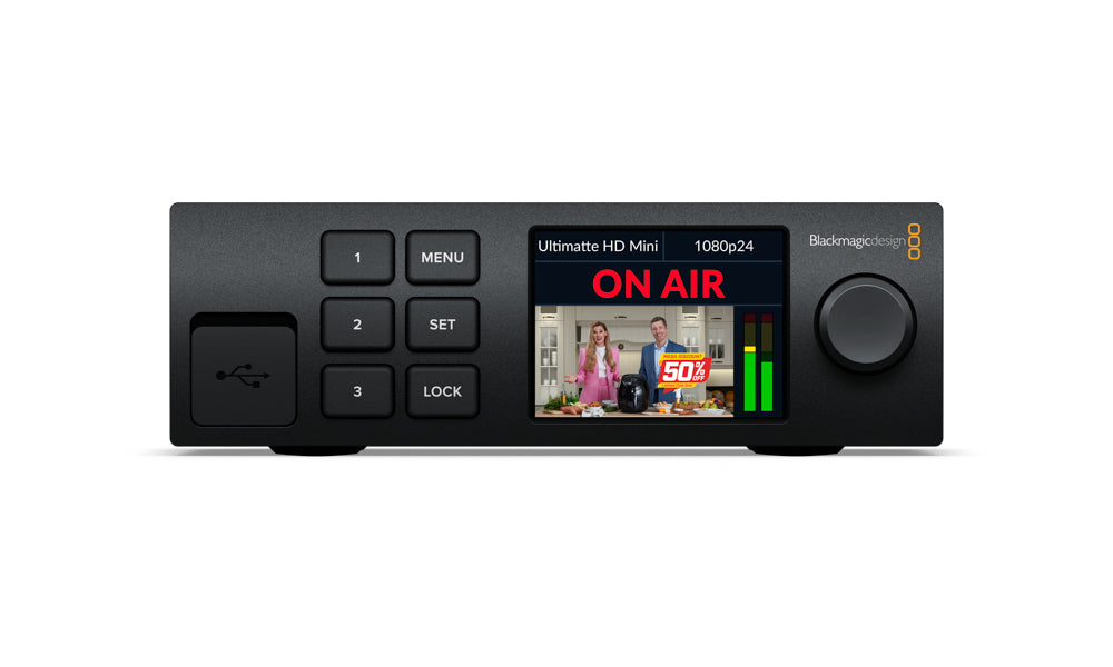 Ultimatte 12 HD Mini is an advanced real time keyer designed for creating next generation virtual sets and more with consumer cameras. The HDMI connections are perfect for use with Blackmagic Studio Cameras, Pocket Cinema Cameras and ATEM Mini live production switchers. Plus there’s a massive 6 GB frame store for realistic fixed camera virtual sets from pre rendered still frames. Ultimatte 12 HD Mini features broadcast quality algorithms and color science to deliver photorealistic composites.